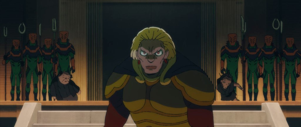 Masago is the villain from the episode “Akakiri.” She is a powerful character, as expressed through her character design. She has broad shoulders and a dominant physique. To top that off, she has red eyes due to being so taken by the dark side. Masago will prove to be a very power-hungry character as she tries to dominate the universe around her.